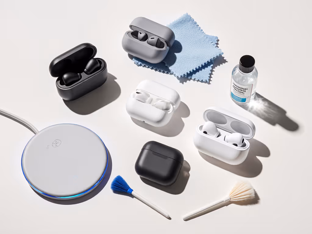 Keep your case charged and store your earbuds in it when not in use. This single habit eliminates charging anxiety and ensures a constant state of readiness. It also safeguards ear health: a closed case prevents dust, lint, and earwax accumulation, which can degrade both fit quality and audio fidelity over time. Keeping your earbuds clean keeps your ears healthy and your audio quality on-point. For step-by-step care, follow our wireless earbuds cleaning guide.